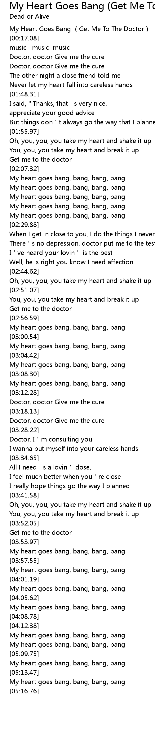 | [00:02.61] | My Heart Goes Bang Get Me To The Doctor |