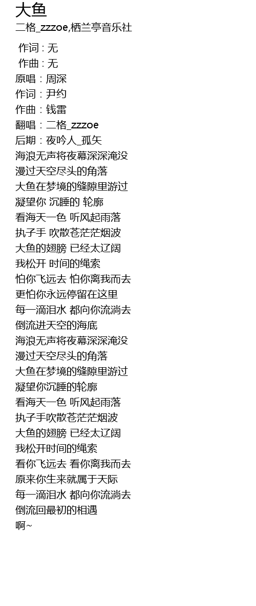 | [03:01.916] | 大鱼的翅膀 已经太辽阔 |