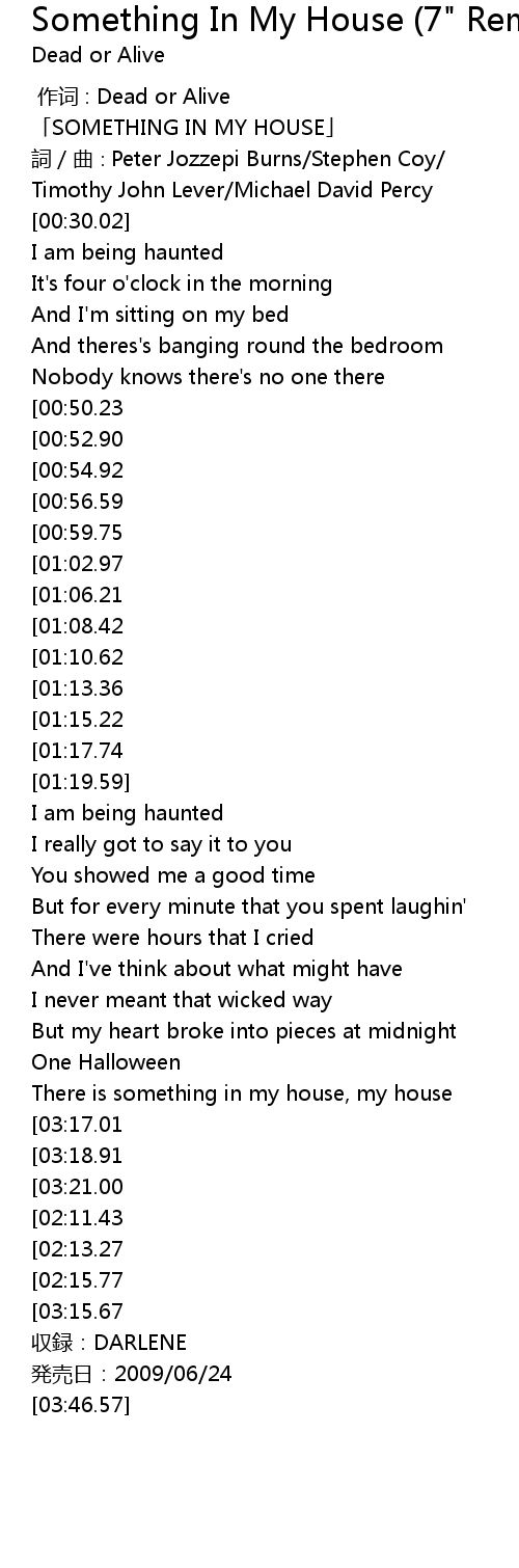 | [00:01.02] | 「SOMETHING IN MY HOUSE」 |