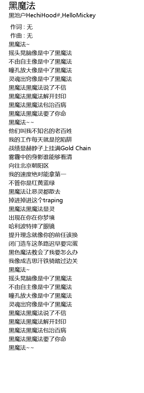 | [01:41.936] | 黑魔法黑魔法显灵 |