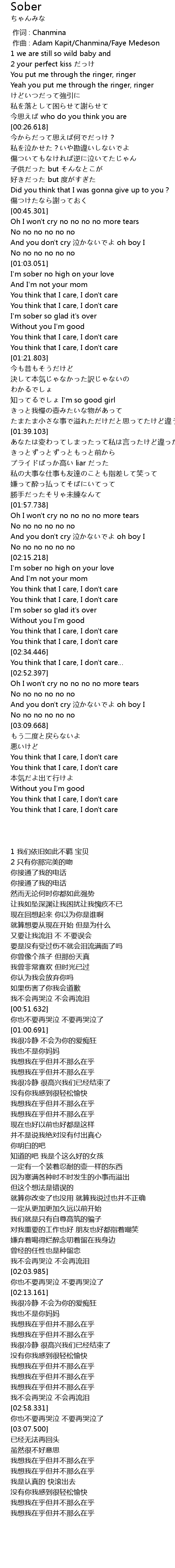 | [00:00.000] | 作词 : Chanmina |