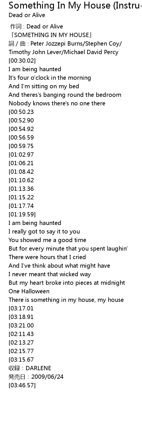 | [00:01.02] | 「SOMETHING IN MY HOUSE」 |