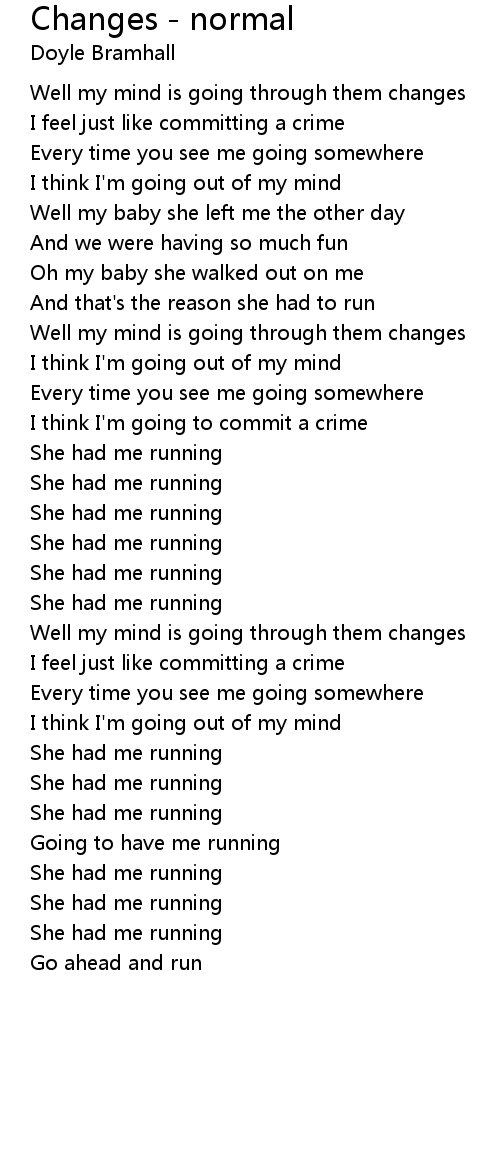 Well my mind is going through them changes |
