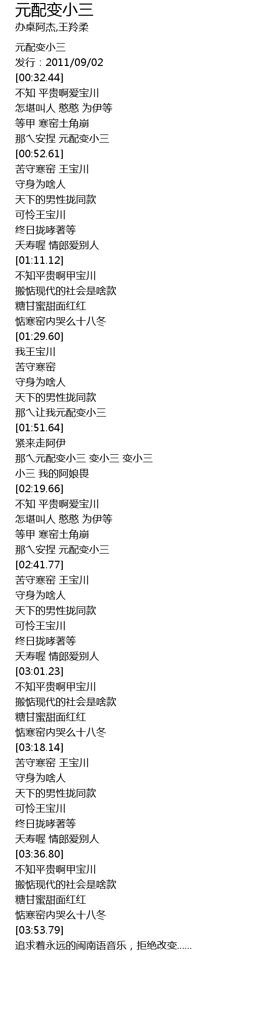| [03:27.72] | 可怜王宝川 |