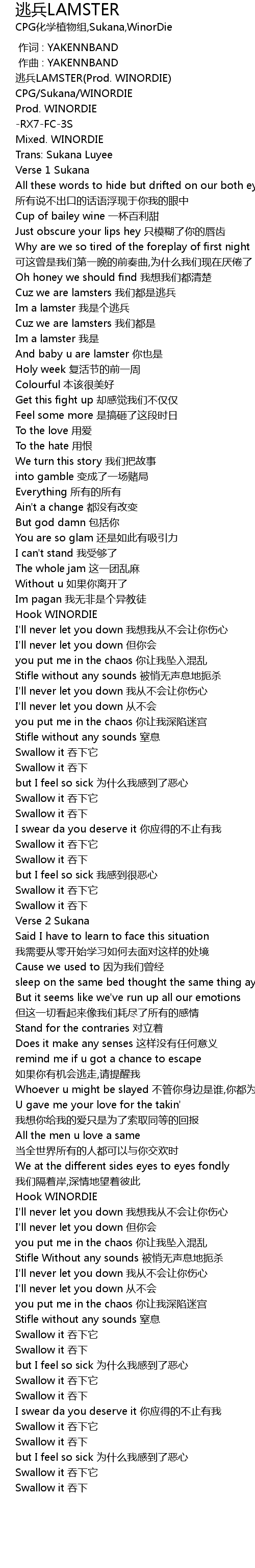 | [00:31.572] | Cuz we are lamsters wo men dou shi tao bing |