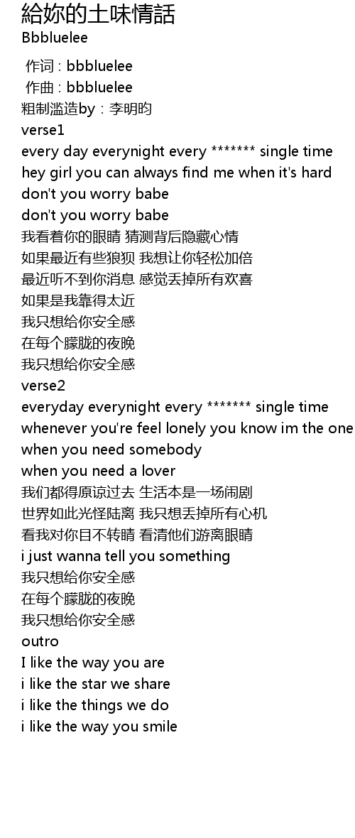 | [00:01.000] | zuò qǔ : bbbluelee |