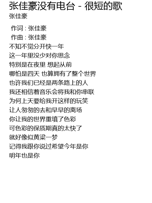 | [00:00.000] | zuò cí : zhāng jiā háo |