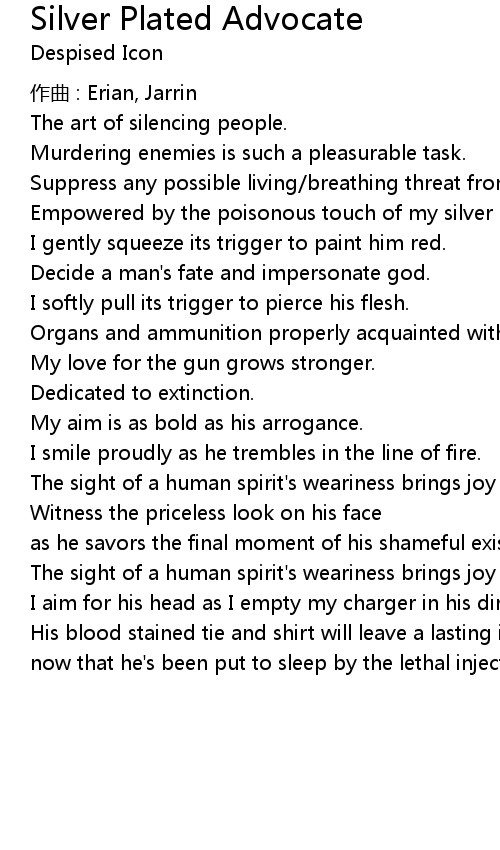 | Song | Silver Plated Advocate |