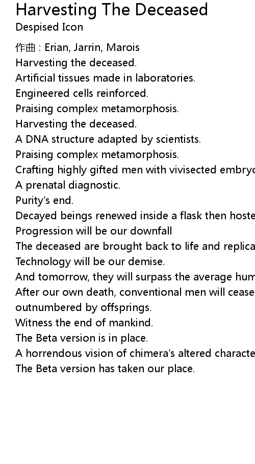 | Song | Harvesting The Deceased |