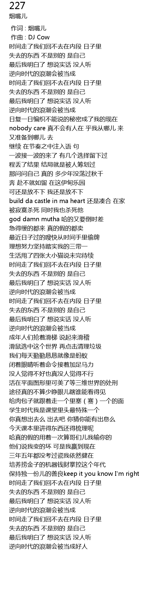 | [00:00.000] | 作词 : 烟嘴儿 |