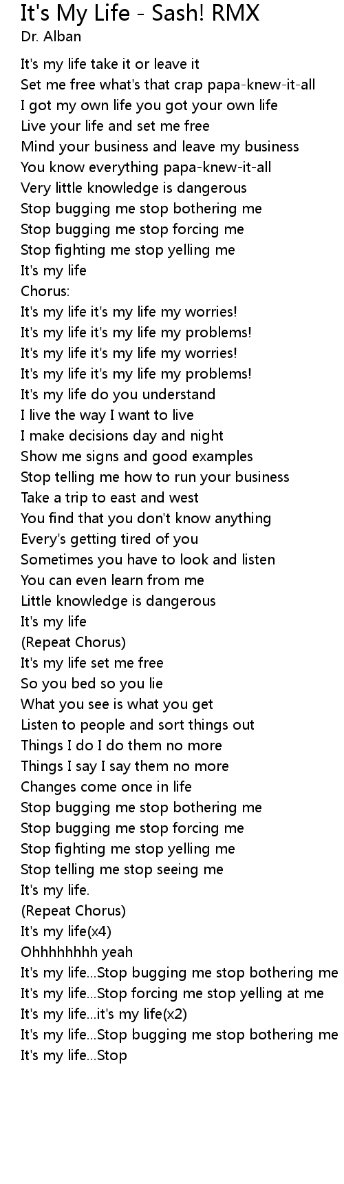 It's my life(x4)
