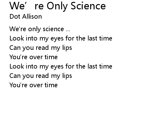 | Song | We’re Only Science |