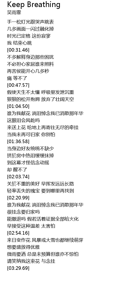 | [00:48.71] | jiǎ shǐ tiān shēng bù tài dǒng hū xī lǐ fā xiè chén zhòng |