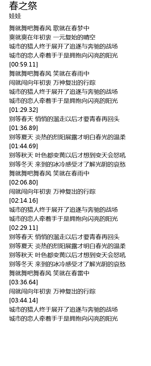| [00:59.86] | 舞就舞吧舞春风 笑就在春雨中 |