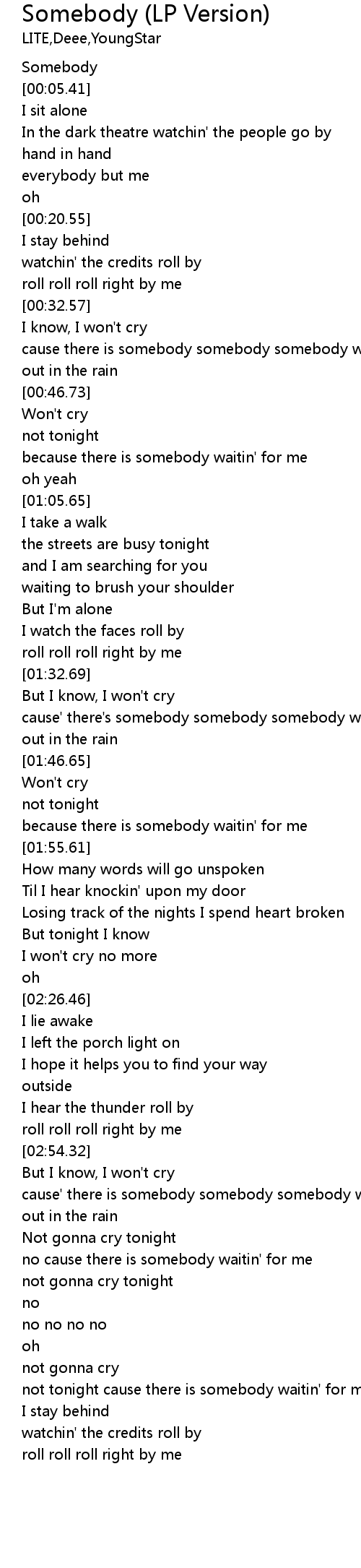 | [01:38.88] | cause' there's somebody somebody somebody waitin' for me |