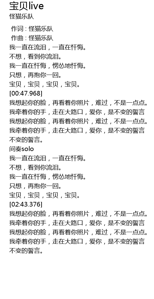 | [00:00.000] | 作词 : 怪猫乐队 |