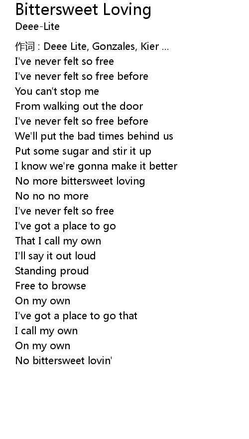 | No more bittersweet loving | |