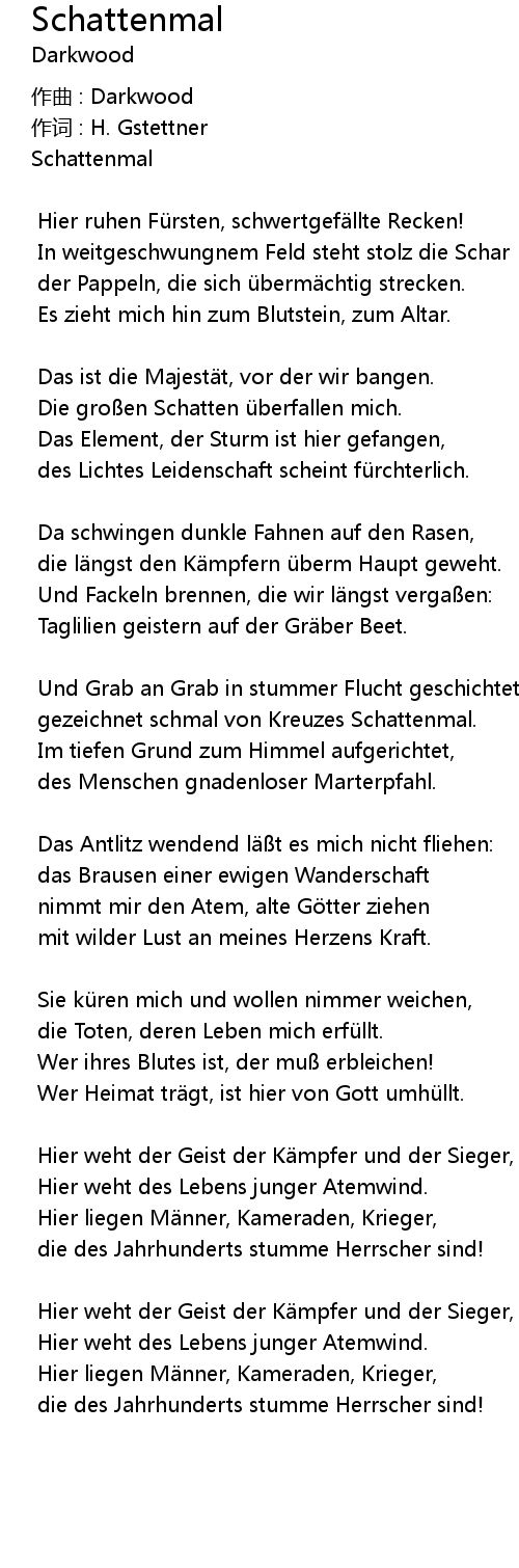 | Es zieht mich hin zum Blutstein, zum Altar. | |
