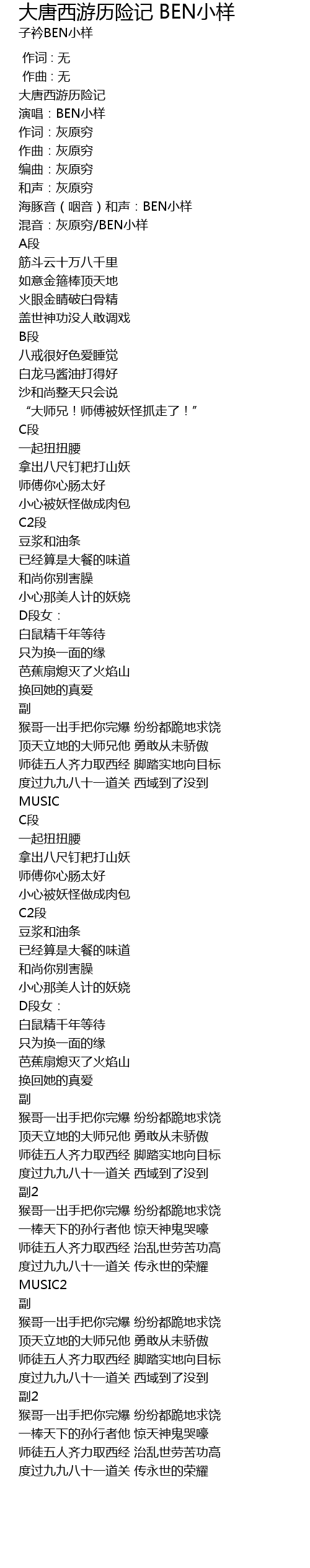 | Song | 大唐西游历险记 BEN小样 |