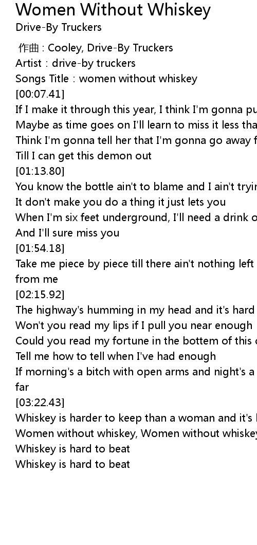 | [03:36.79] | Women without whiskey, Women without whiskey |