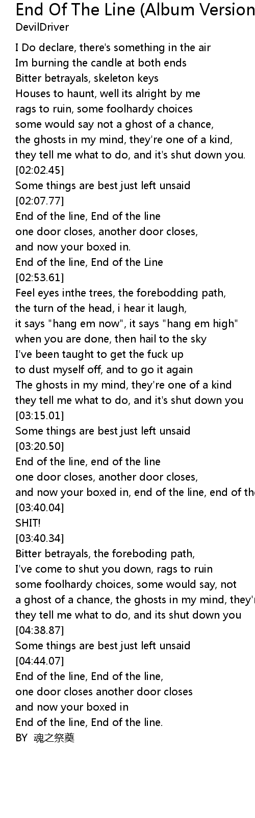| [03:27.85] | and now your boxed in, end of the line, end of the line |