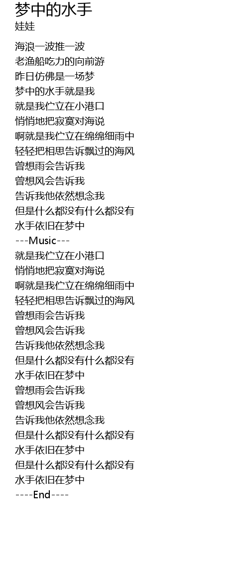 | [02:35.59] | shuǐ shǒu yī jiù zài mèng zhōng |