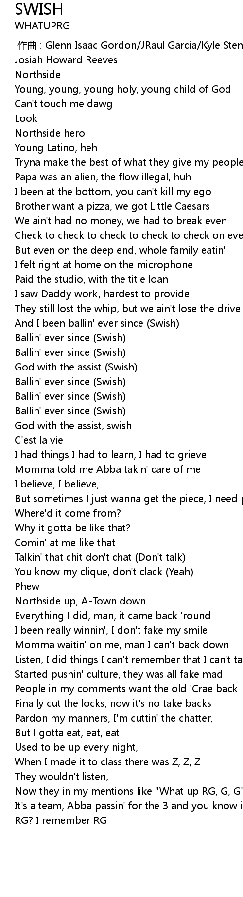 | [02:12.33] | Now they in my mentions like " What up RG, G, G" |