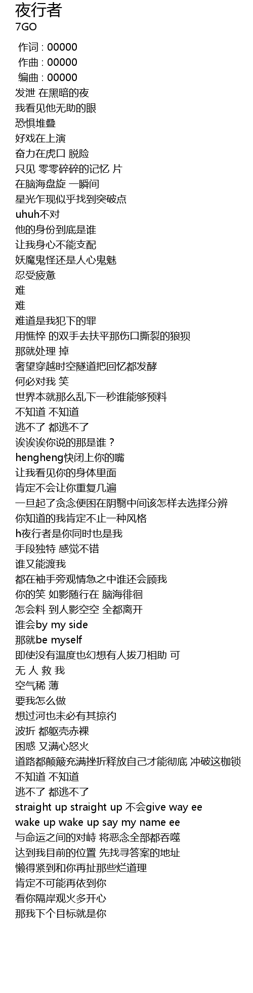 | [00:01.000] | zuò qǔ : 00000 |