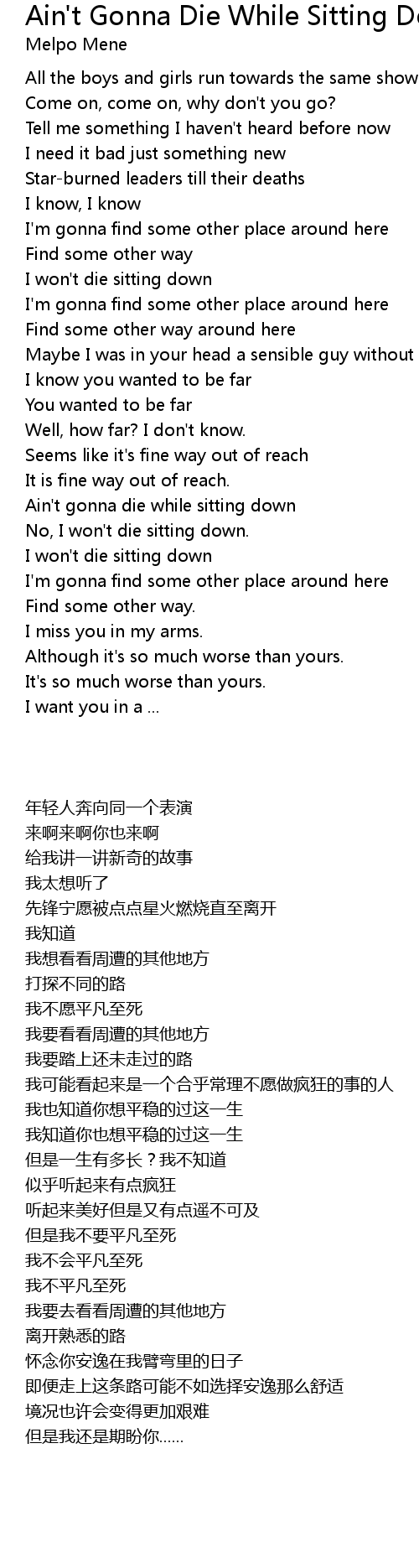 Ain't gonna die while sitting down |