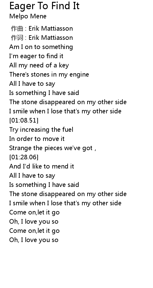 | [00:16.30] | I'm eager to find it |