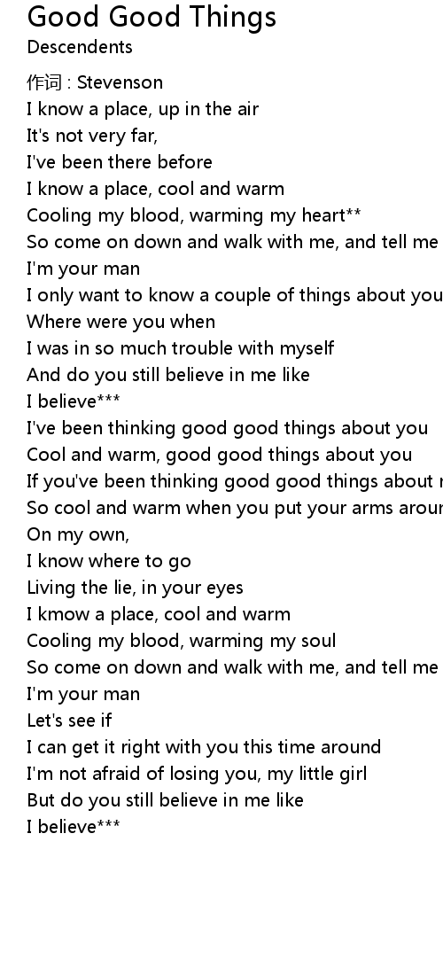 | Cool and warm, good good things about you | |
