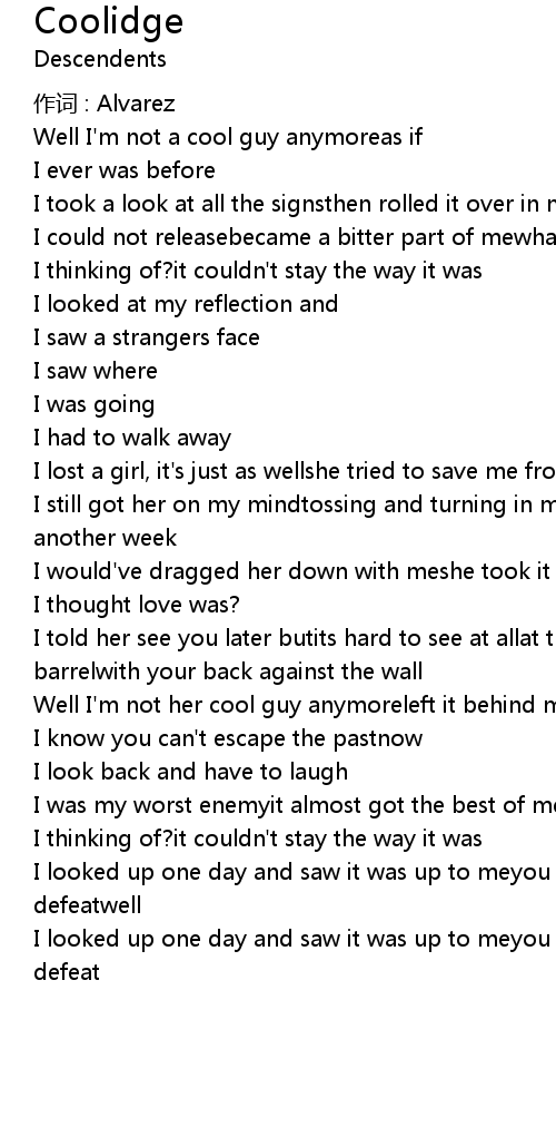 | Well I' m not her cool guy anymoreleft it behind me and locked the door | |