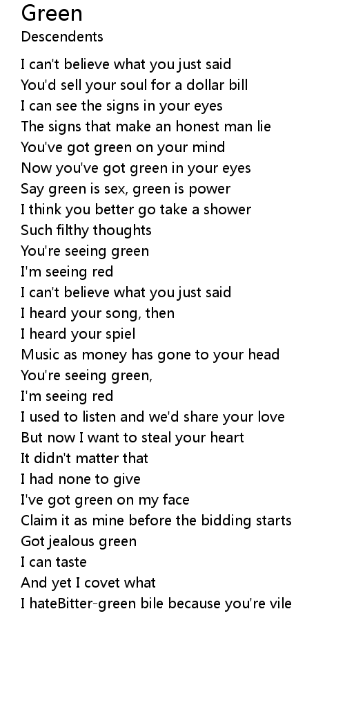 Say green is sex, green is power |