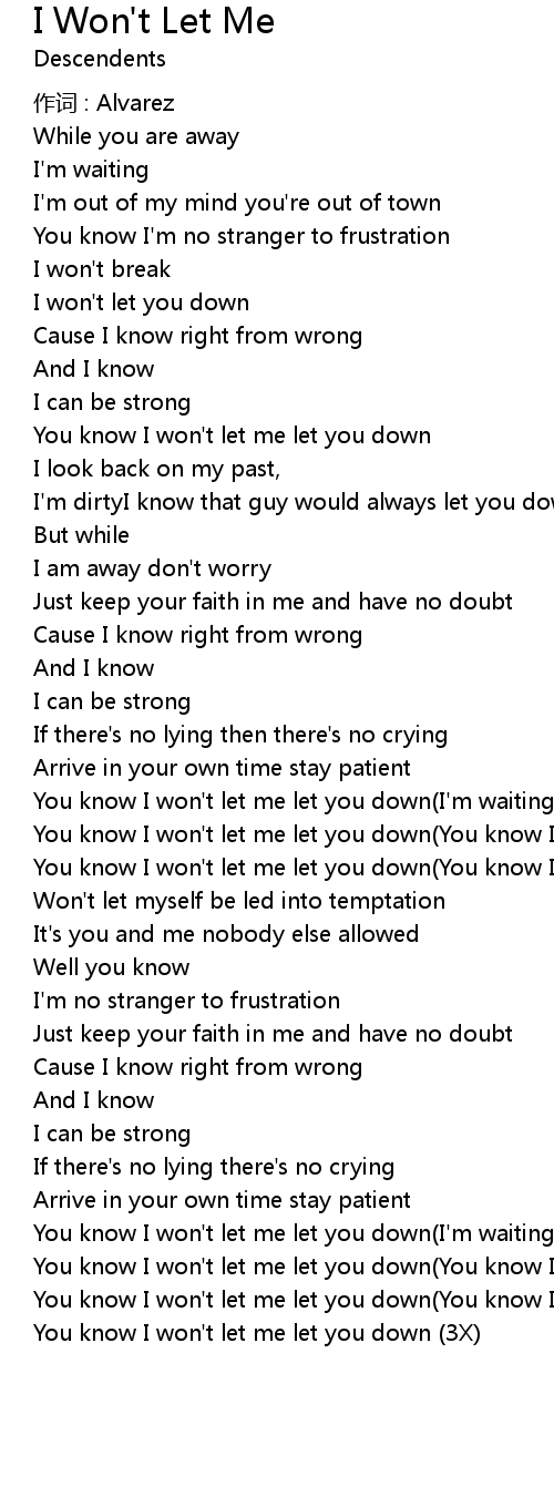| You know I won' t let me let you down You know I won' t let me, I' m waiting | |