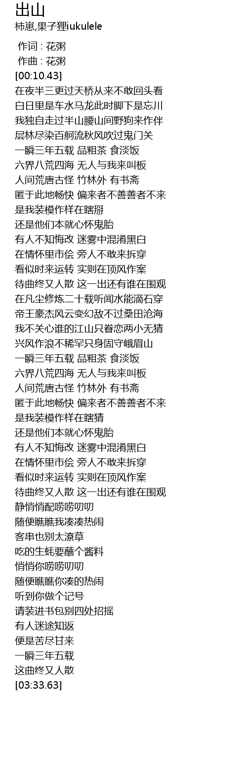 | [01:11.73] | 待曲终又人散 这一出还有谁在围观 |