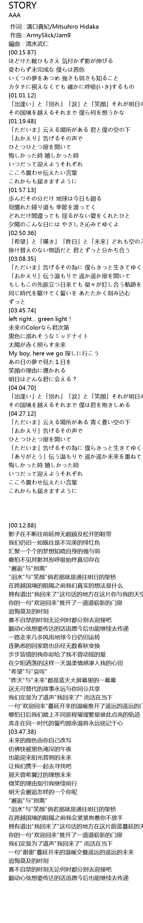 | [03:00.17] | 掛け替えのない物語だと 君とずっと分かち合う |