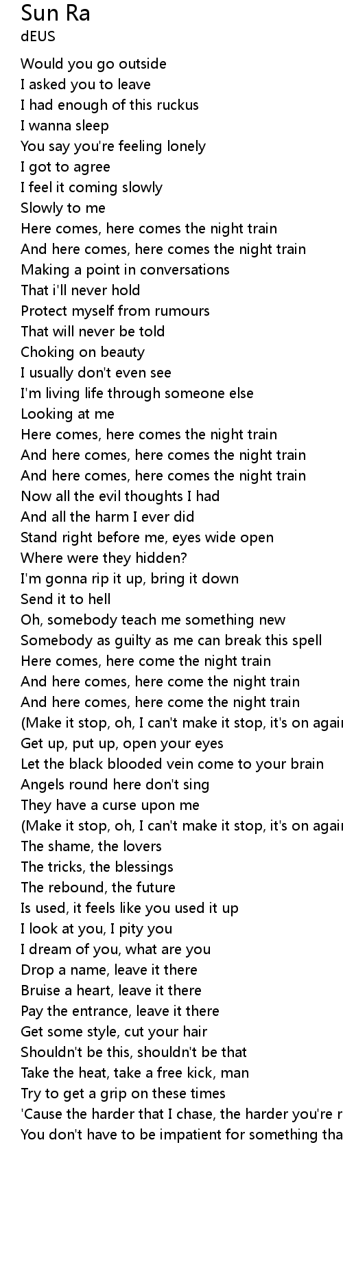 Here comes, here come the night train |
