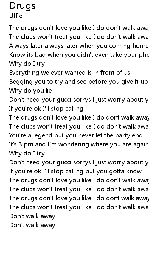 The drugs don't love you like I do dont walk away from me tonight |