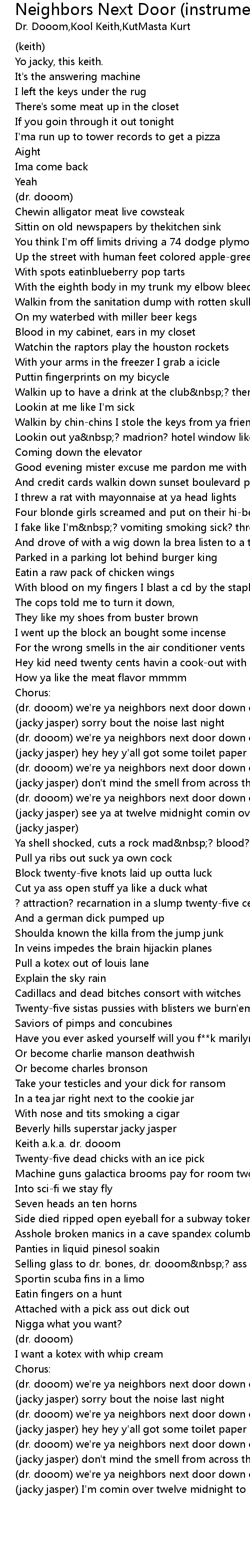 (dr. dooom) we're ya neighbors next door down on the next floor |