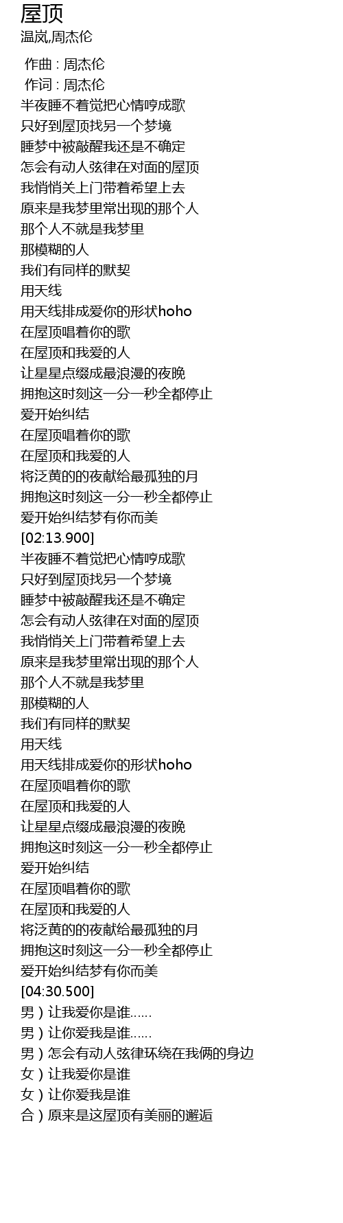 | [04:02.020] | 在屋顶唱着你的歌 |
