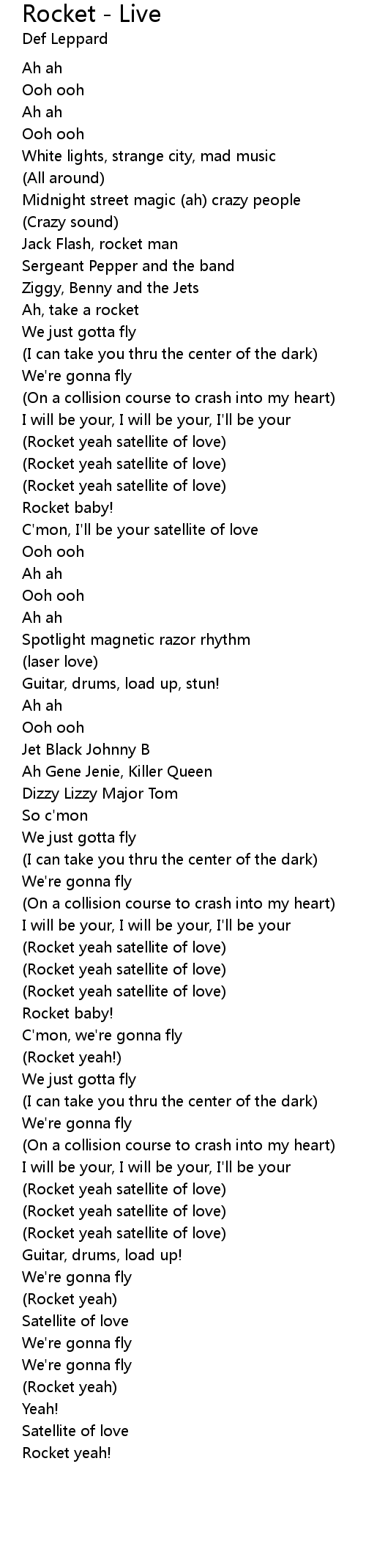 Rocket - Live Lyrics