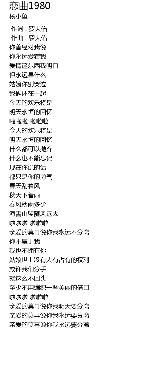 | [01:46.17] | 亲爱的莫再说你我永远不分离 |