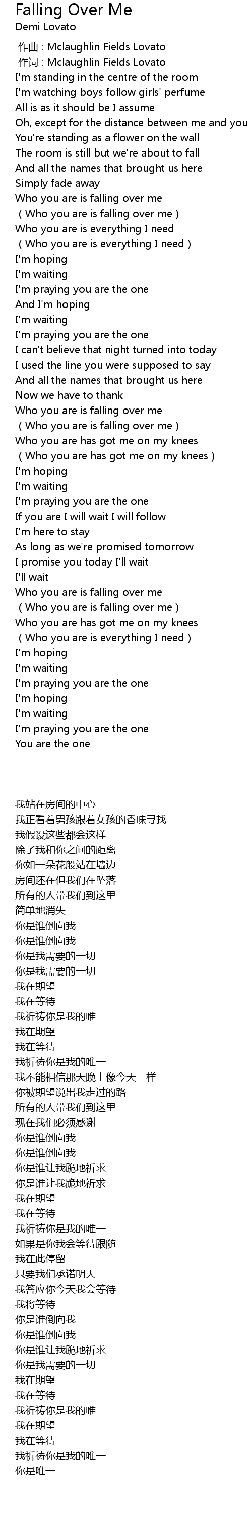 | [00:01.00] | 作词 : Mclaughlin Fields Lovato |