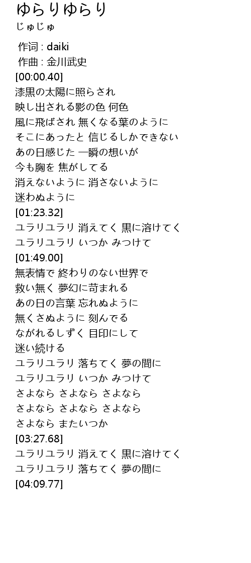 | [01:35.88] | ユラリユラリ いつか みつけて |