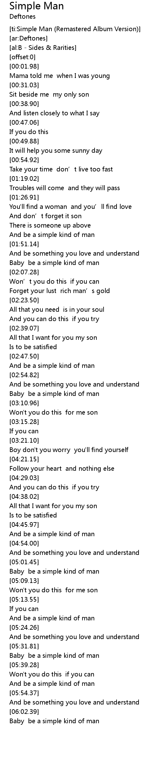 | [ti:Simple Man (Remastered Album Version)] | |