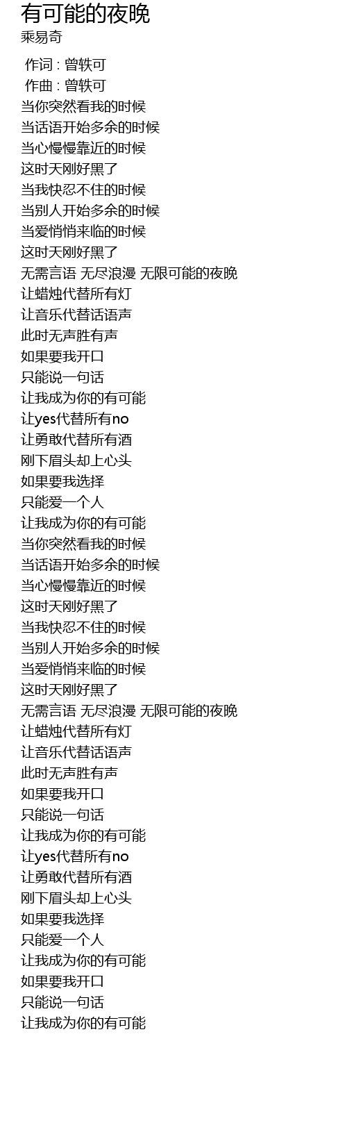 | [02:39.173] | 无需言语 无尽浪漫 无限可能的夜晚 |