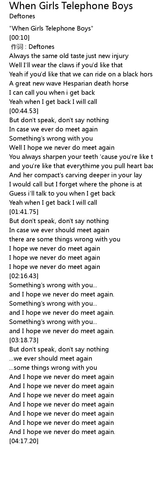 | [01:09.40] | You always sharpen your teeth ' cause you' re like that |