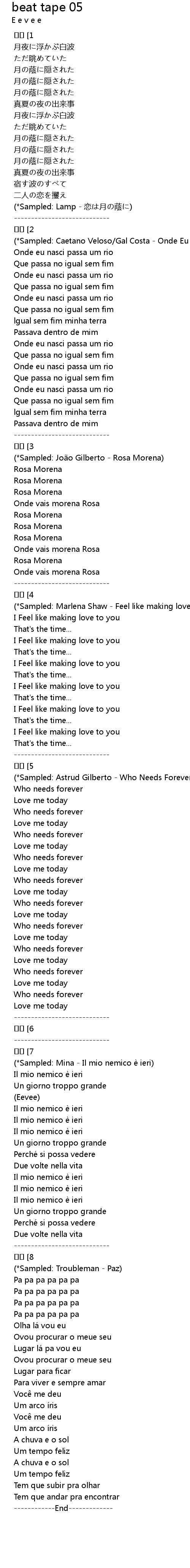 | [06:10.284] | (*Sampled: Astrud Gilberto - Who Needs Forever) |