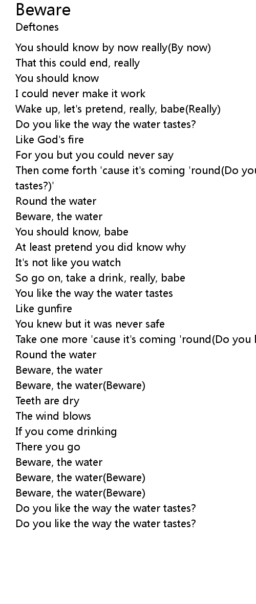 Then come forth 'cause it's coming 'round(Do you like the way the water tastes?)' |
