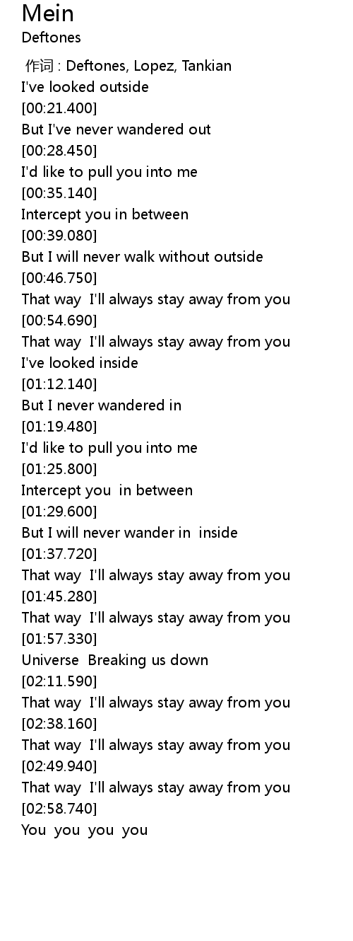 | [00:00.00] | 作词 : Deftones, Lopez, Tankian |